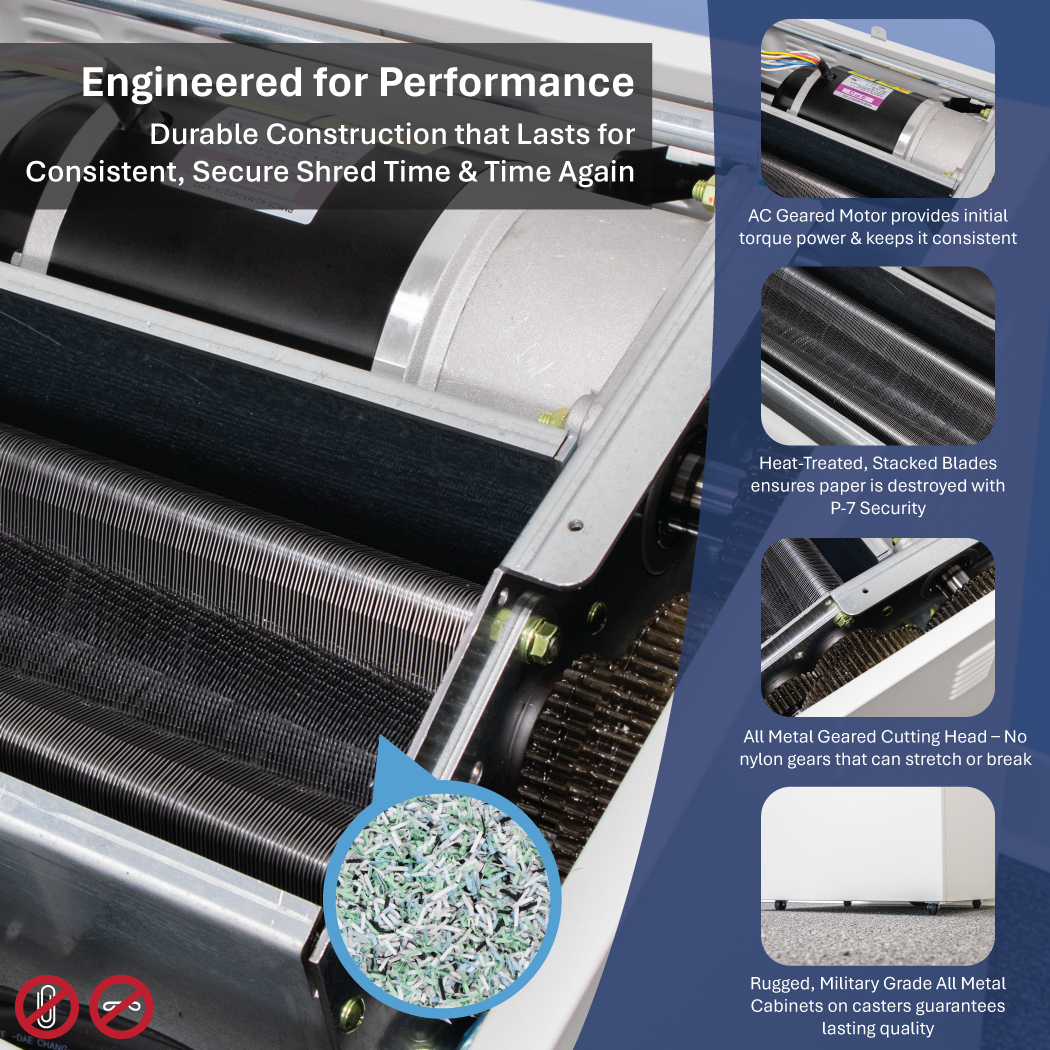- P-7 High Security cross-cut shredder for top-level document destruction