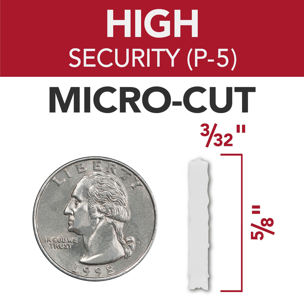 - Micro-cut blades compliant with P-5 security level for maximum document destruction