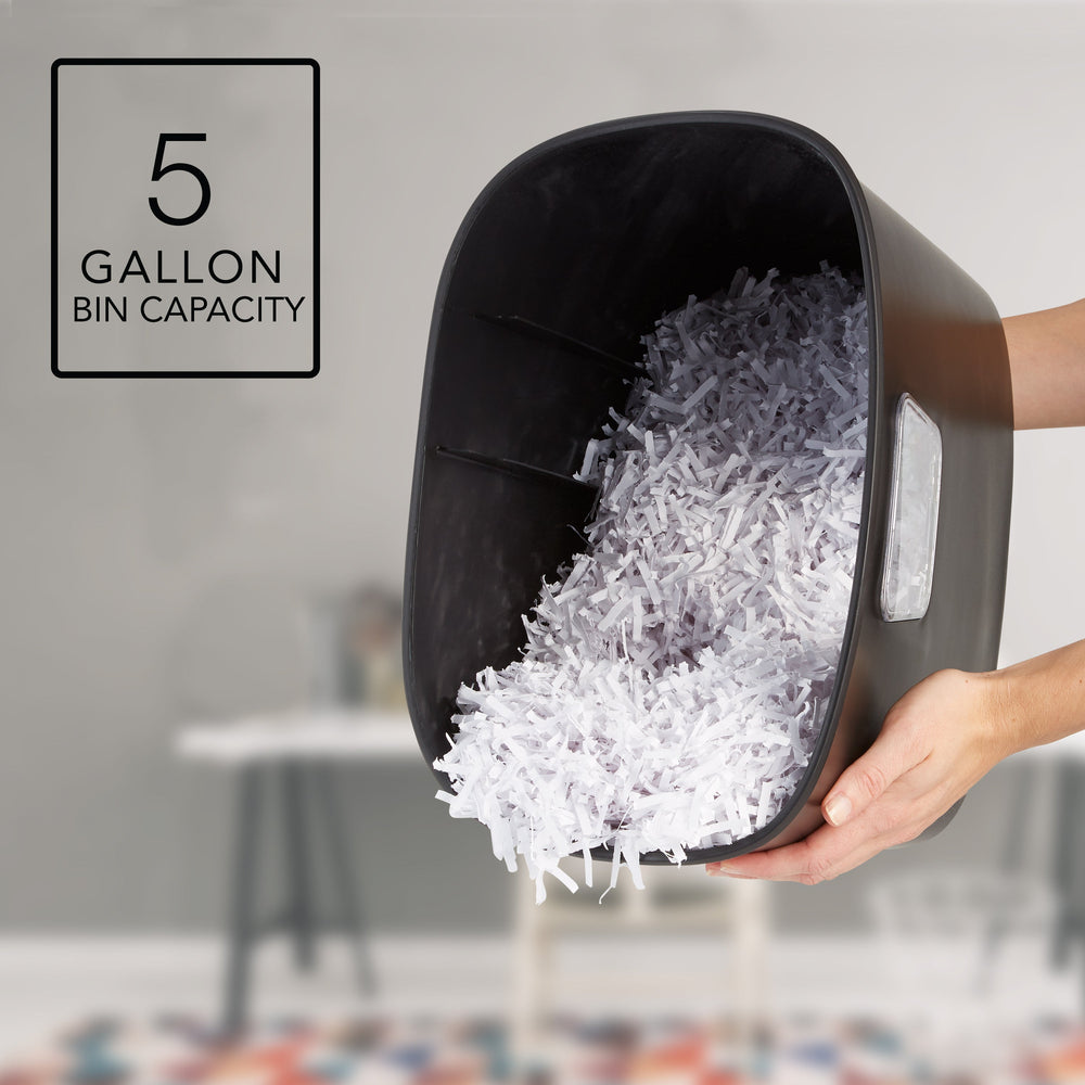 - Cross-cut shredder that securely disposes of sensitive information on personal or office documents