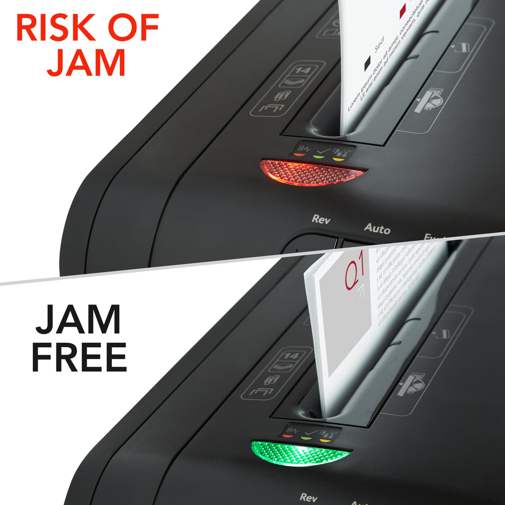- LED lights indicate shred capacity to prevent jams