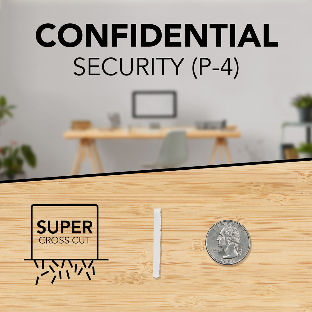 - Ensures secure destruction of confidential documents with super cross-cut style
