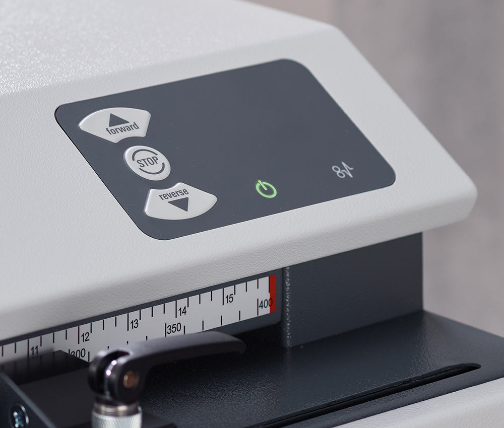 Featuring an adjustable working width with an integrated scale, the HSM ProfiPack ecoChip allows precise control over the structure and volume of the packaging material. With a 16.73 inch wide feed opening, cutting size varies by feed direction, producing 0.41 × 1.58-2.17 in chips when fed with the shaft or 0.41 × 1.58-7.87 in chips when fed against it. This cardboard shredder features induction hardened solid steel cutting rollers that handle cardboard staples and support long service life, while an energy efficient drive, mobile castors with parking brake, emergency stop switch, and a clear LED control panel ensure safe and reliable operation.